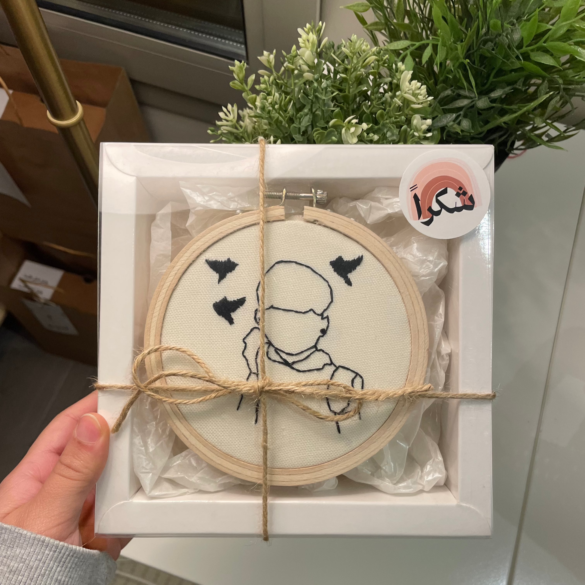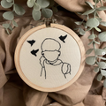 تصميم مطرّز يدويًا على قماش ناعم بإطار خشبي أنيق يعتبر عن الذكرى بدون كلام بتفاصيل ناعمة تُنفذ بالخيط حسب الطلب. مثالي كهدية تعبّر، أو قطعة تحتفظين فيها لركنك الخاص في البيت.