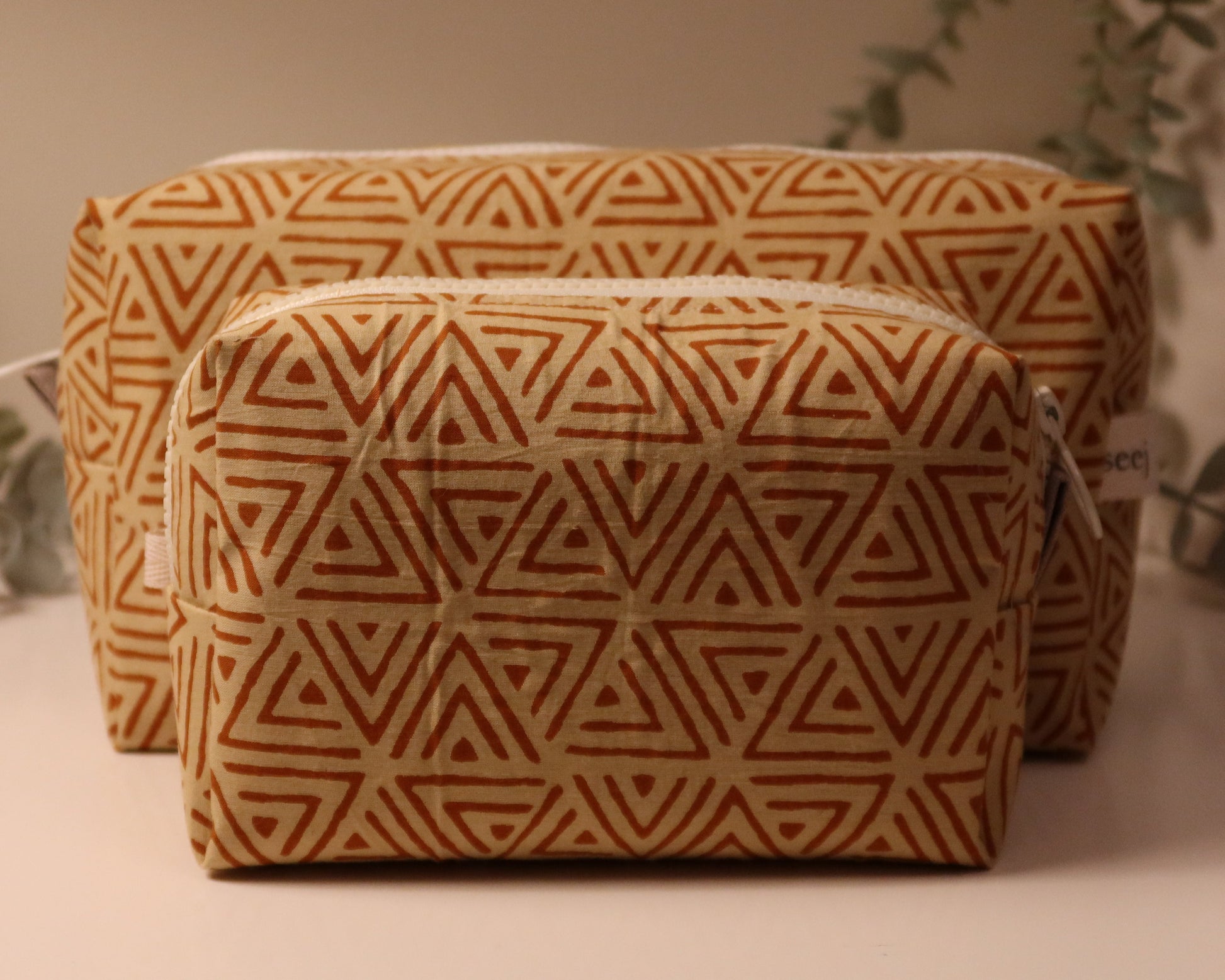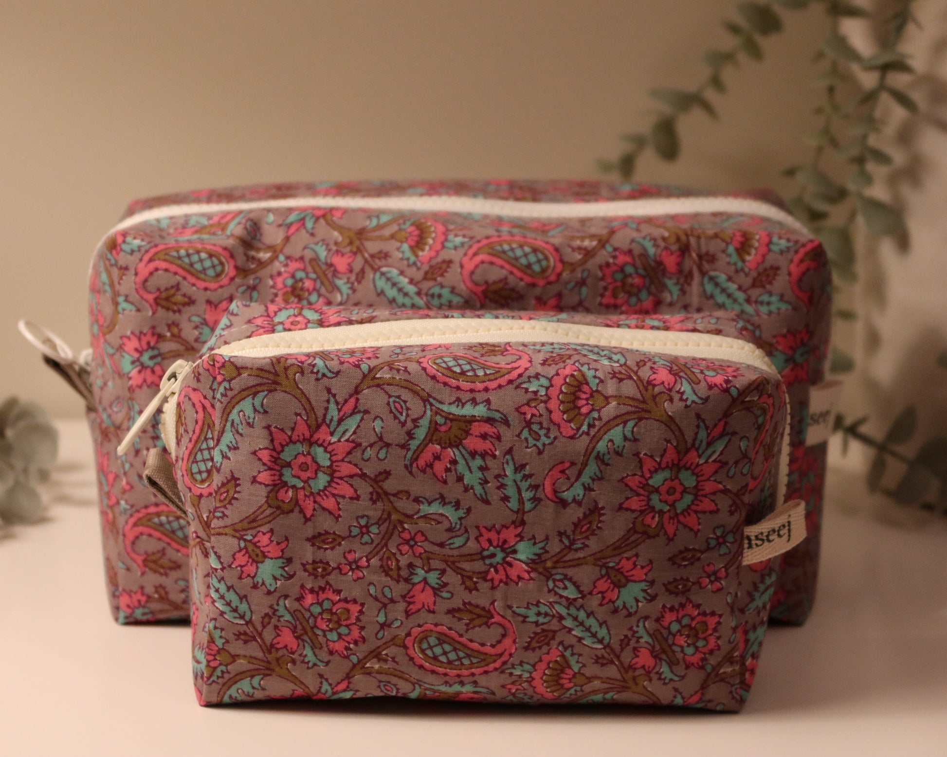 حقيبة مصنوعة من قماش هندية مختارة بعناية، ومبطنة بخامة داخلية صلبة، سهلة التنظيف ومناسبة للغسيل اليدوي والآلي سحابها ناعم وثابت ما يخونك وتفصيلها دقيق من كل زاوية نهتم بأدق التفاصيل عشان تلمسين الفرق من أول لمسه