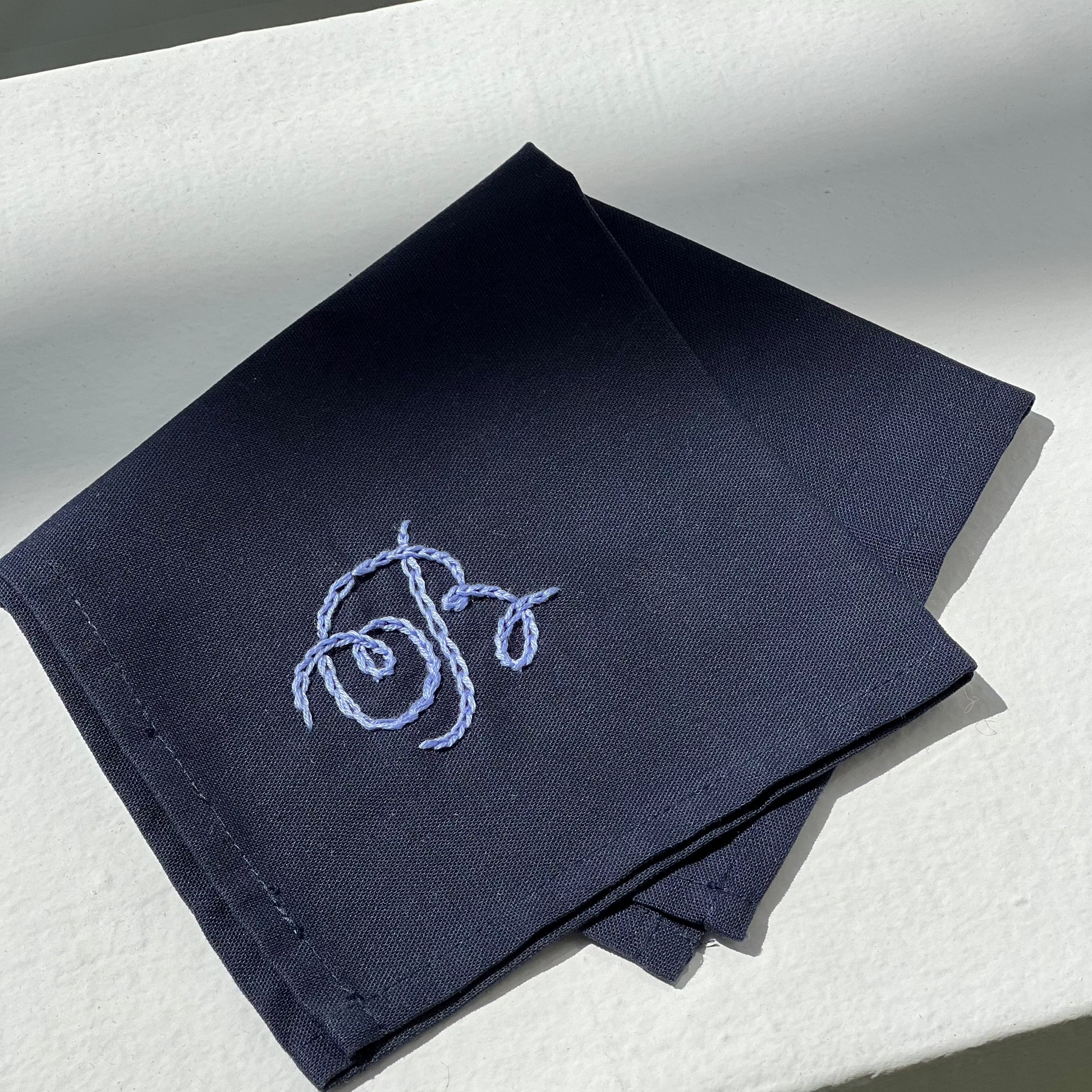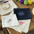 مناديل قطنية ناعمة بتطريز يدوي بسيط ولطيف، نطرزها بالخيط الأسود حسب طلبچ.